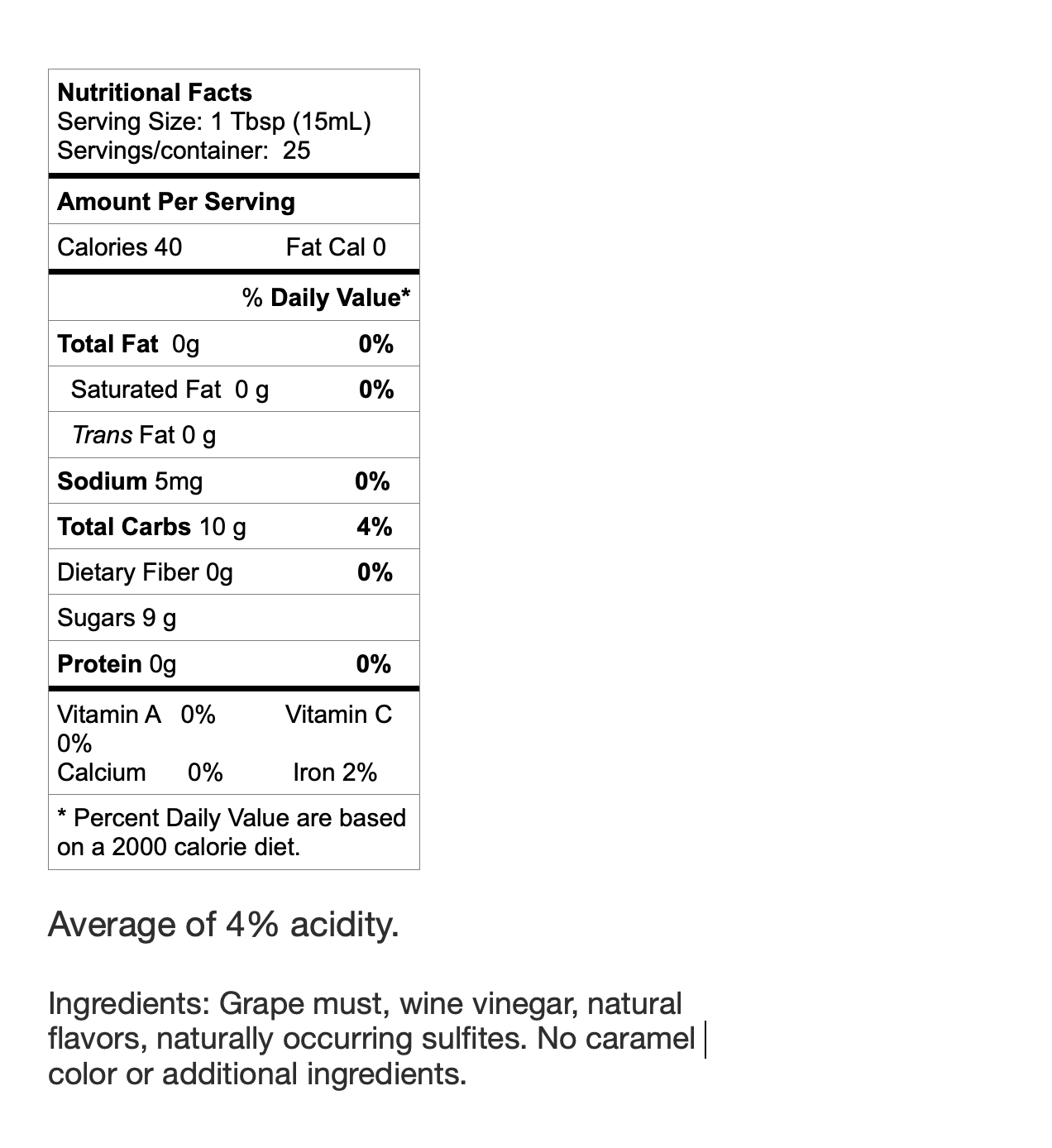 Top your vanilla gelato, macerate your fresh berries and please, try this vinegar in your turkey mole recipe and watch your guests be amazed.