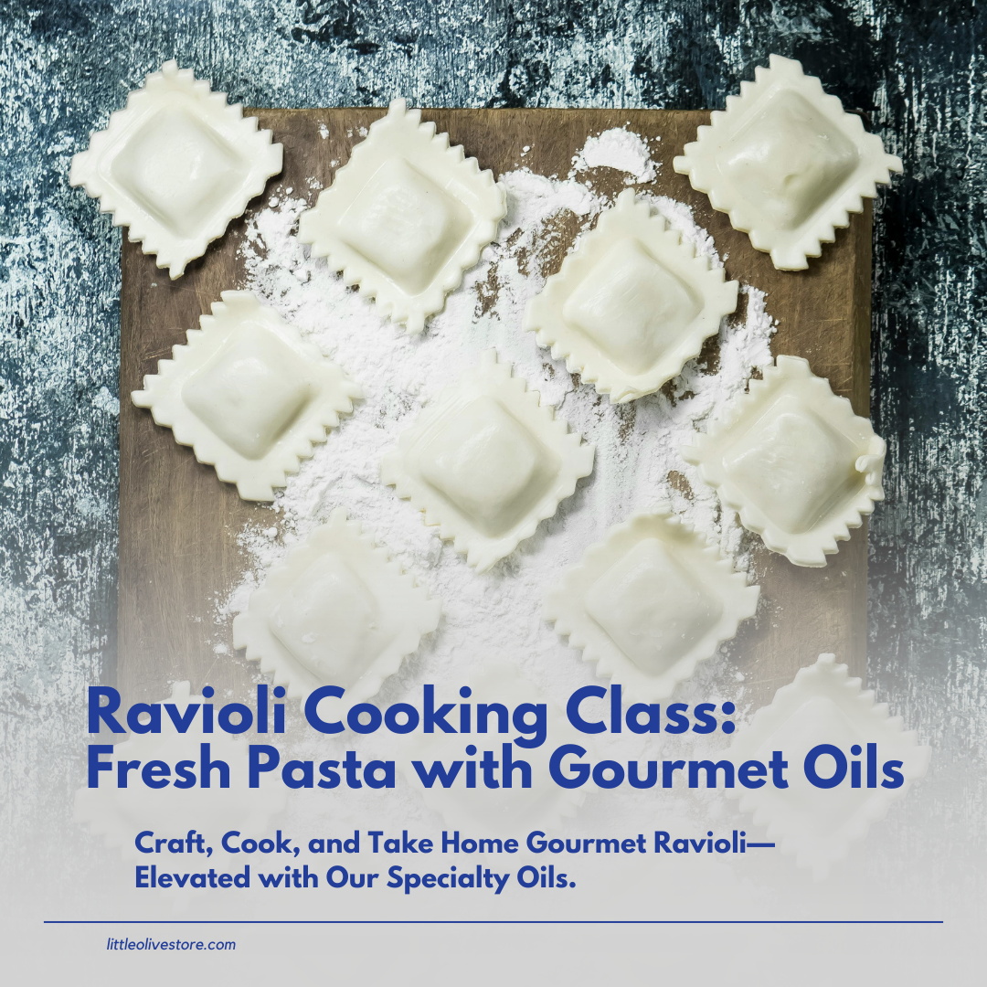 Master the art of homemade ravioli in our hands-on class! Learn to create fresh pasta, a delicious filling, and a perfectly paired sauce using our premium oils and vinegars.